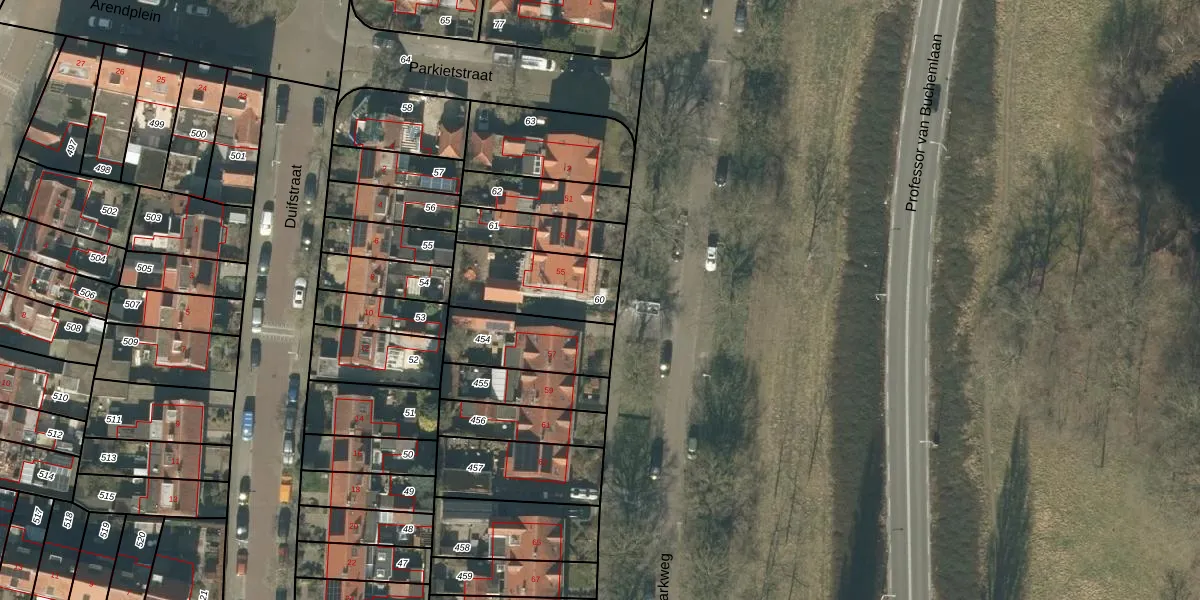 Gebruik de zoekbalk of klik op een perceel om informatie over het perceel te bekijken.