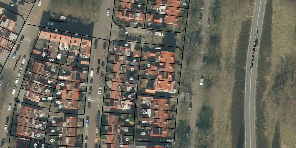 Gebruik de zoekbalk of klik op een perceel om informatie over het perceel te bekijken.
