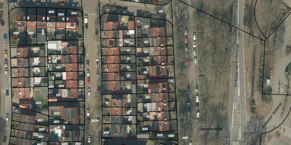 Gebruik de zoekbalk of klik op een perceel om informatie over het perceel te bekijken.