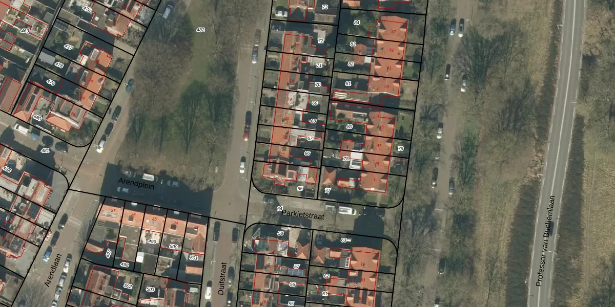 Gebruik de zoekbalk of klik op een perceel om informatie over het perceel te bekijken.
