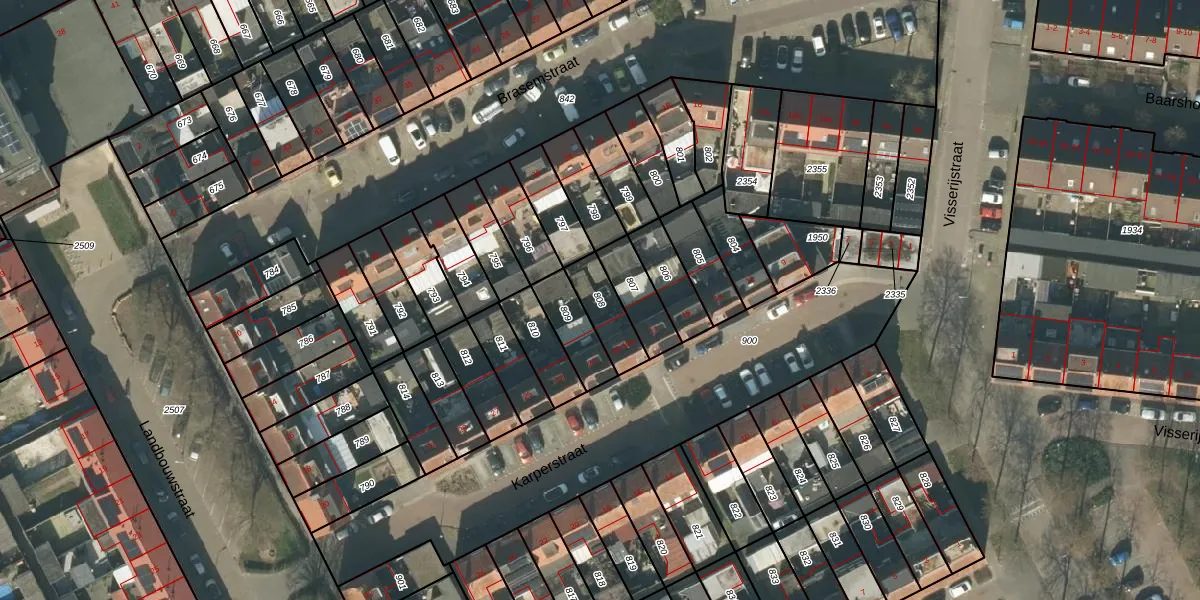 Gebruik de zoekbalk of klik op een perceel om informatie over het perceel te bekijken.