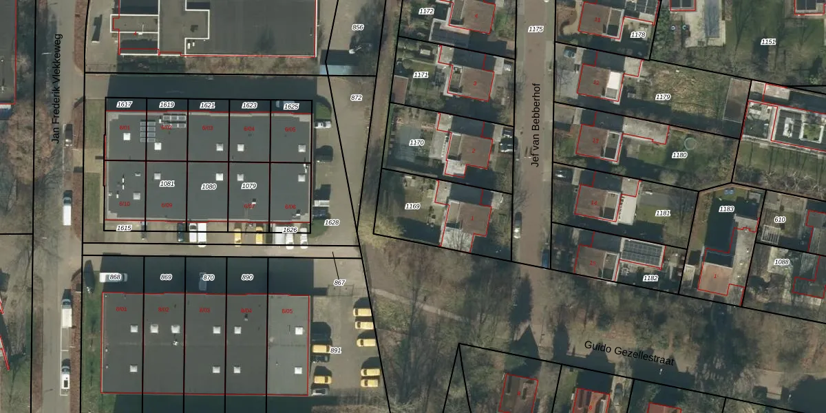 Gebruik de zoekbalk of klik op een perceel om informatie over het perceel te bekijken.