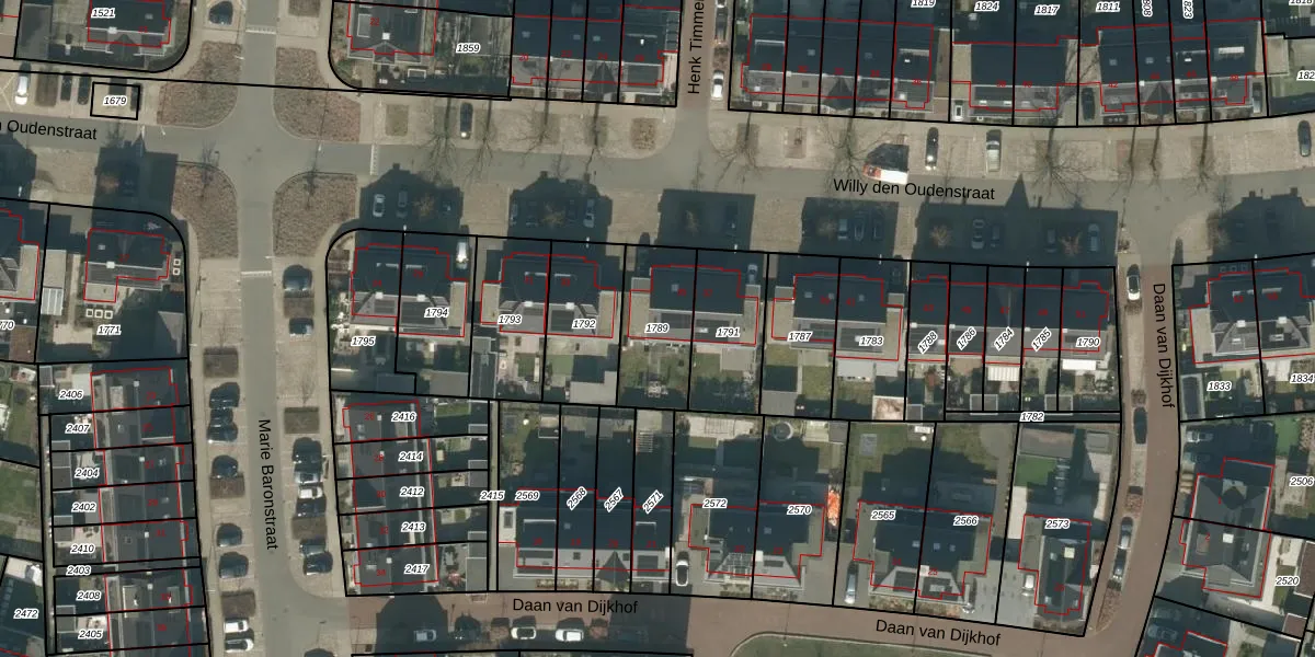 Gebruik de zoekbalk of klik op een perceel om informatie over het perceel te bekijken.