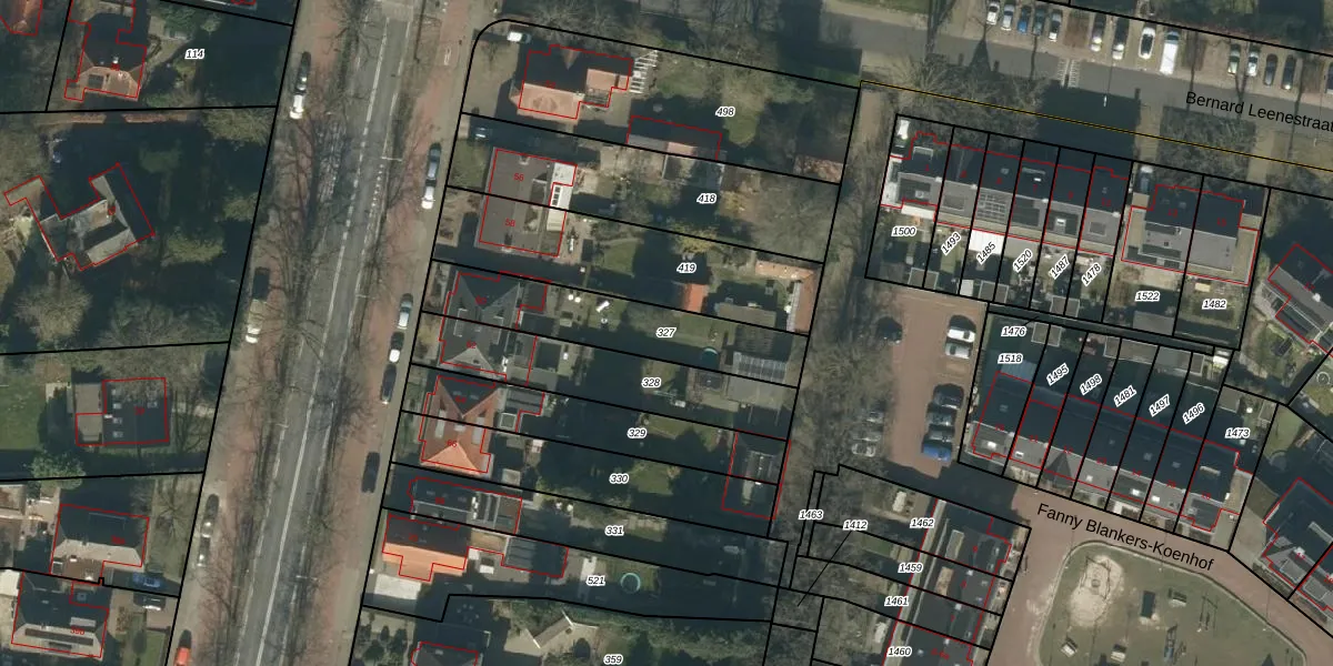 Gebruik de zoekbalk of klik op een perceel om informatie over het perceel te bekijken.