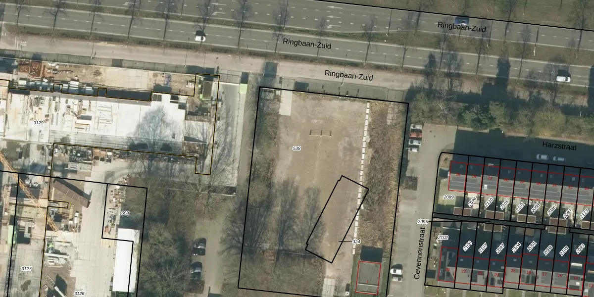 Gebruik de zoekbalk of klik op een perceel om informatie over het perceel te bekijken.