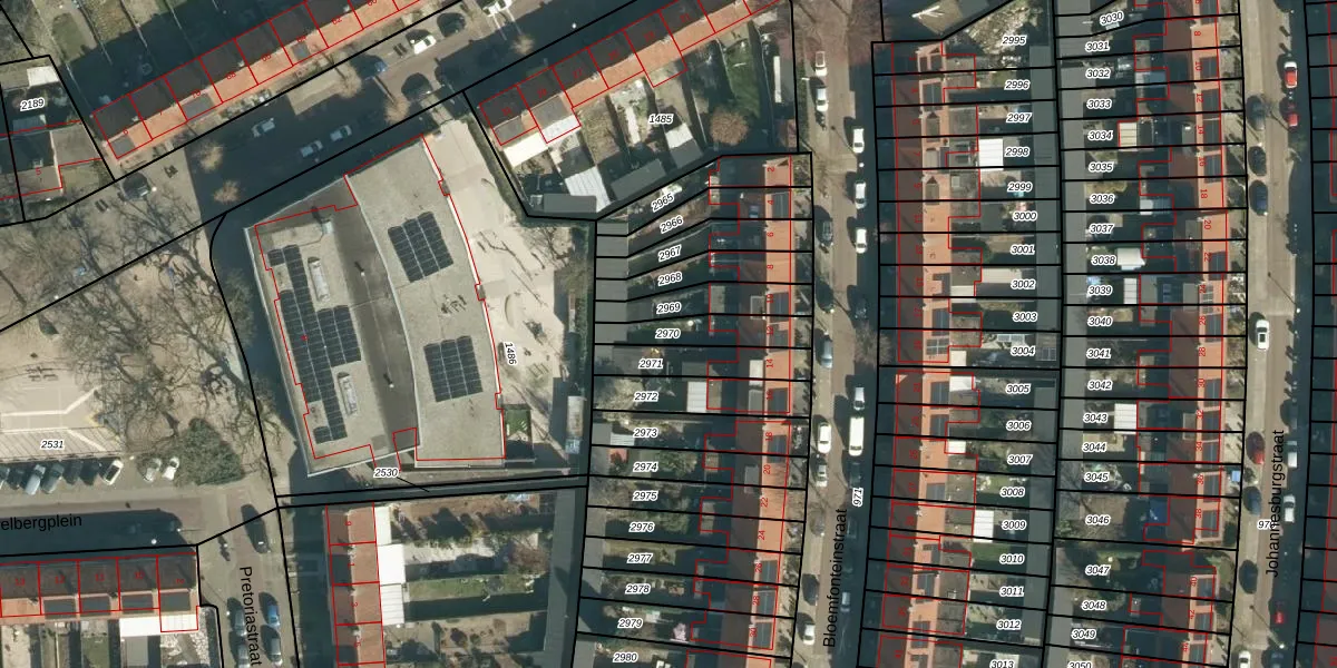 Gebruik de zoekbalk of klik op een perceel om informatie over het perceel te bekijken.