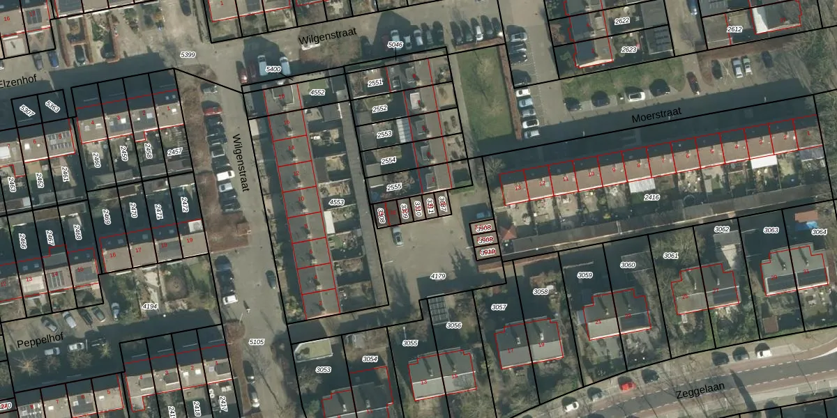 Gebruik de zoekbalk of klik op een perceel om informatie over het perceel te bekijken.