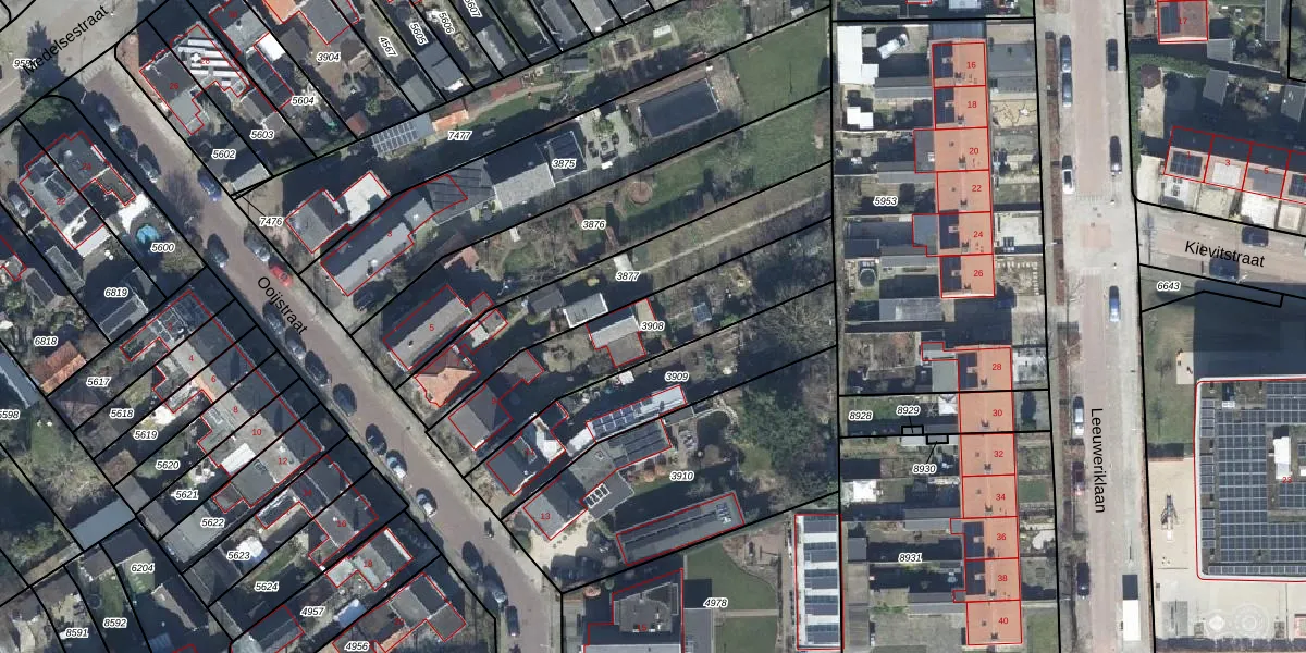 Gebruik de zoekbalk of klik op een perceel om informatie over het perceel te bekijken.