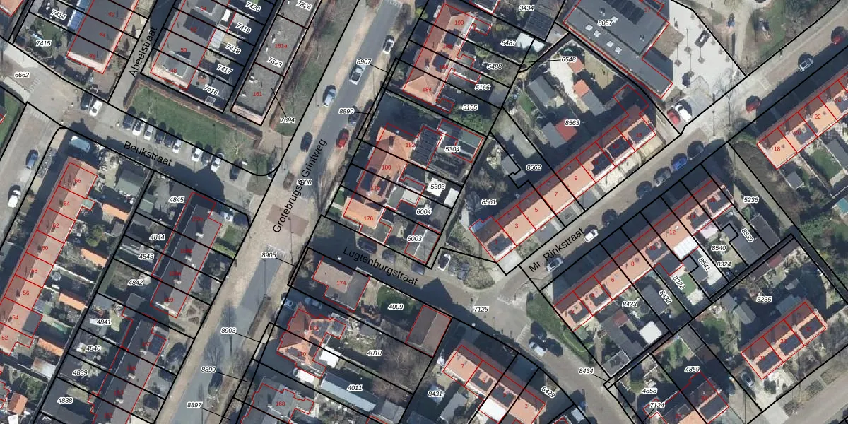 Gebruik de zoekbalk of klik op een perceel om informatie over het perceel te bekijken.