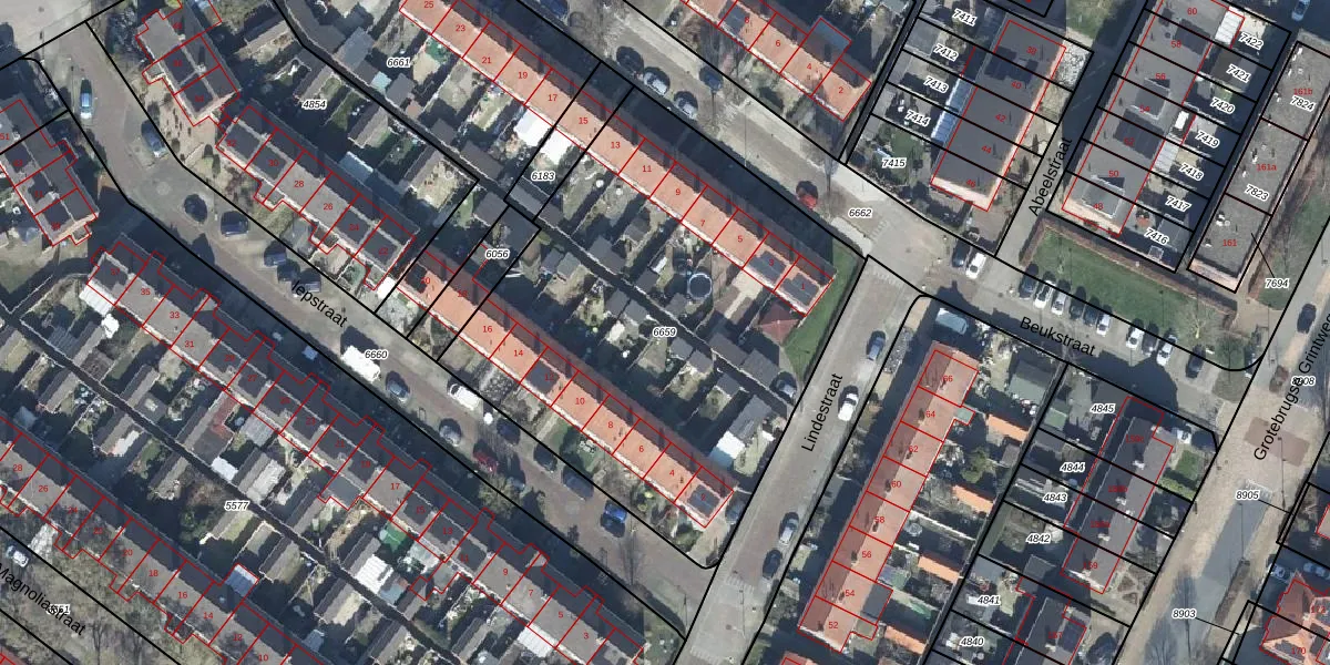 Gebruik de zoekbalk of klik op een perceel om informatie over het perceel te bekijken.