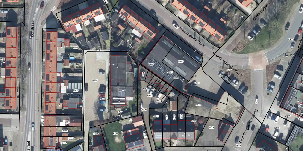 Gebruik de zoekbalk of klik op een perceel om informatie over het perceel te bekijken.