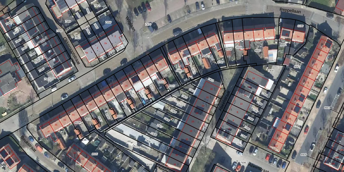 Gebruik de zoekbalk of klik op een perceel om informatie over het perceel te bekijken.