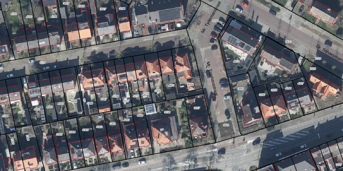 Gebruik de zoekbalk of klik op een perceel om informatie over het perceel te bekijken.