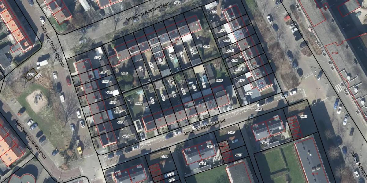 Gebruik de zoekbalk of klik op een perceel om informatie over het perceel te bekijken.