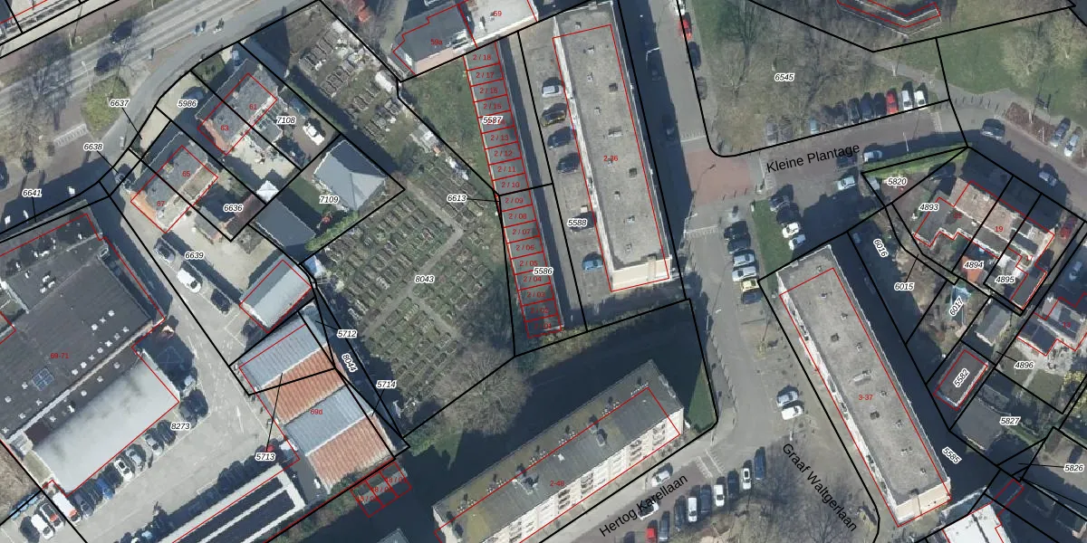 Gebruik de zoekbalk of klik op een perceel om informatie over het perceel te bekijken.