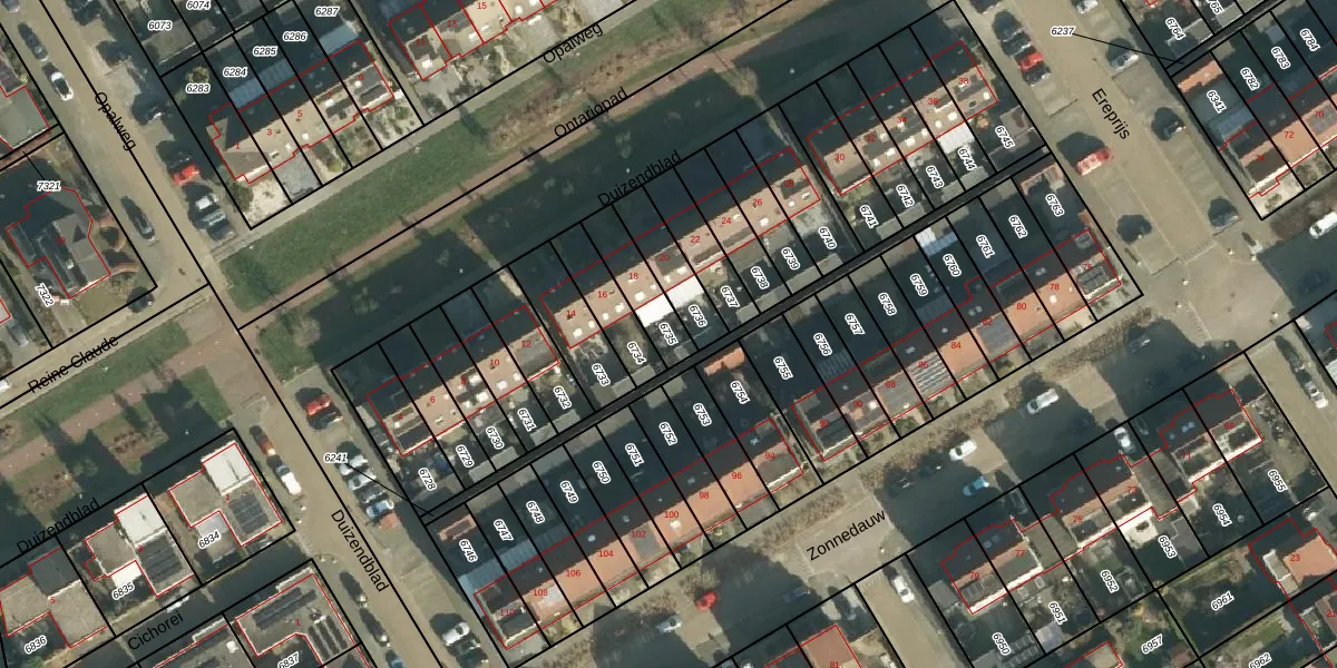 Gebruik de zoekbalk of klik op een perceel om informatie over het perceel te bekijken.