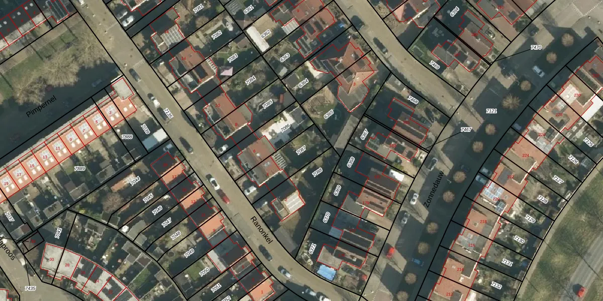 Gebruik de zoekbalk of klik op een perceel om informatie over het perceel te bekijken.