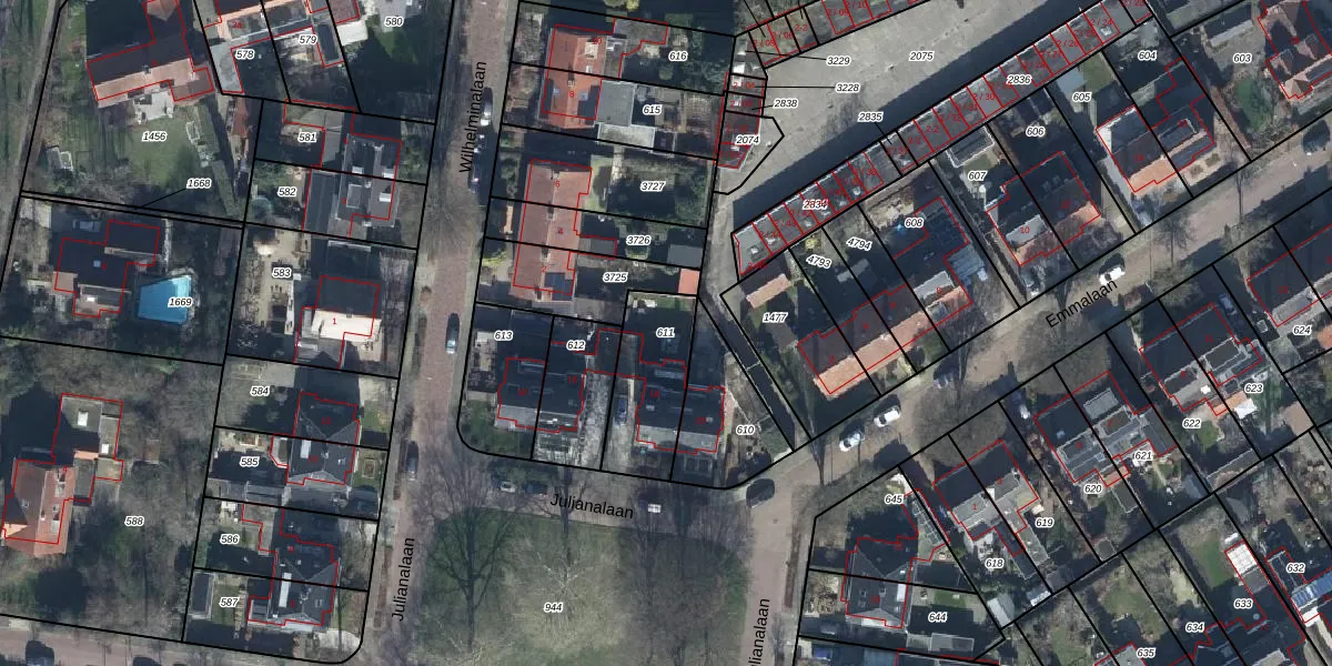Gebruik de zoekbalk of klik op een perceel om informatie over het perceel te bekijken.
