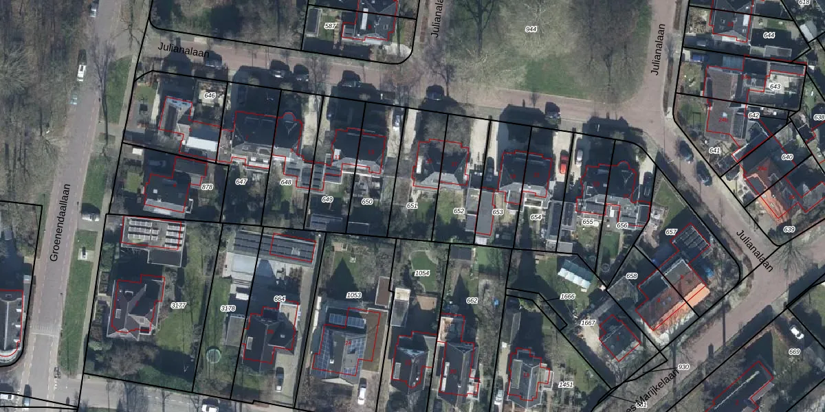 Gebruik de zoekbalk of klik op een perceel om informatie over het perceel te bekijken.