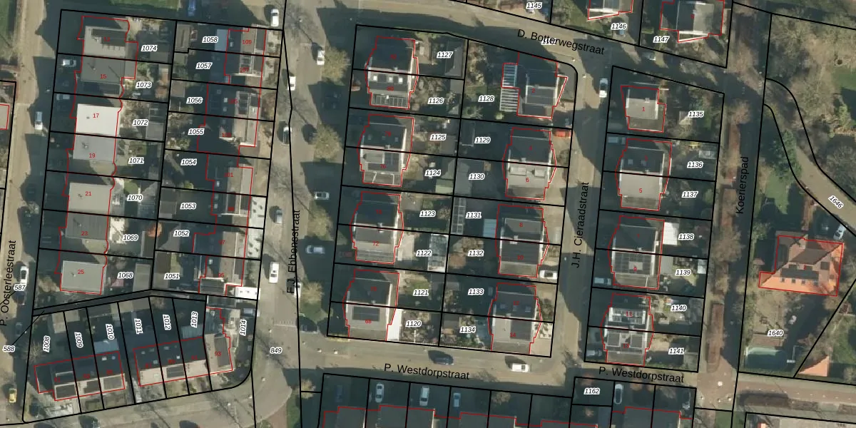 Gebruik de zoekbalk of klik op een perceel om informatie over het perceel te bekijken.