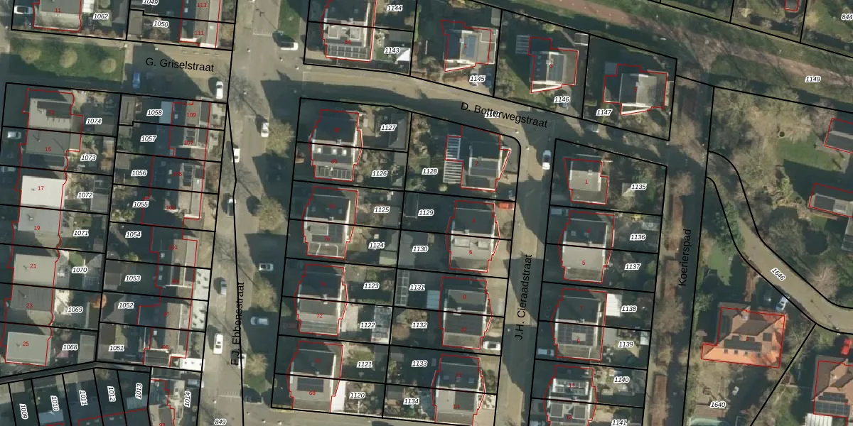 Gebruik de zoekbalk of klik op een perceel om informatie over het perceel te bekijken.