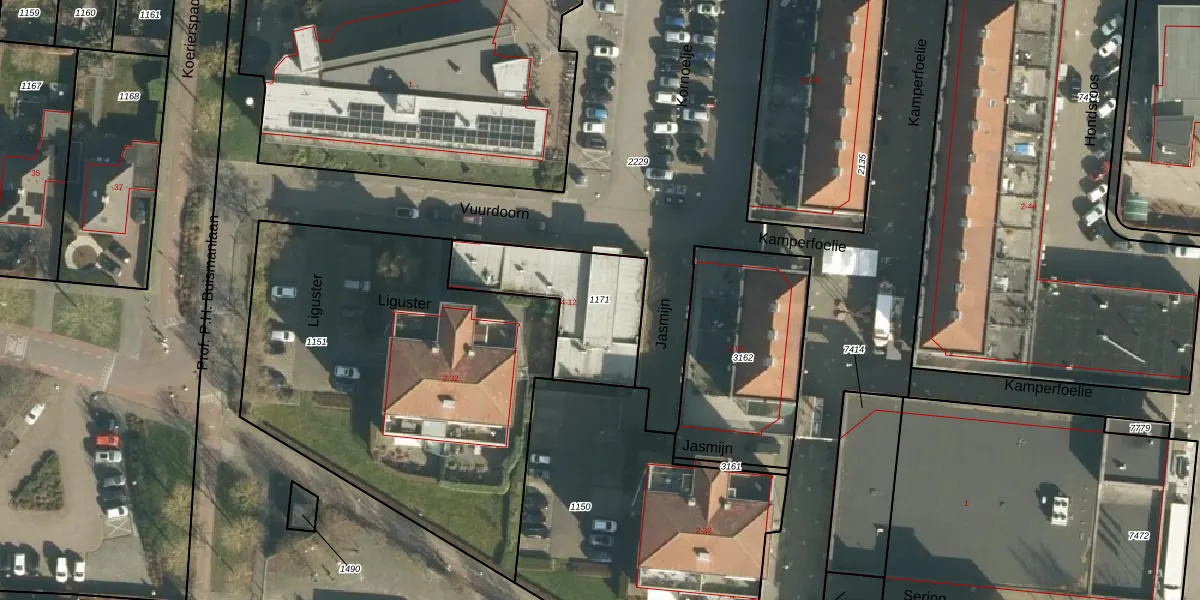 Gebruik de zoekbalk of klik op een perceel om informatie over het perceel te bekijken.