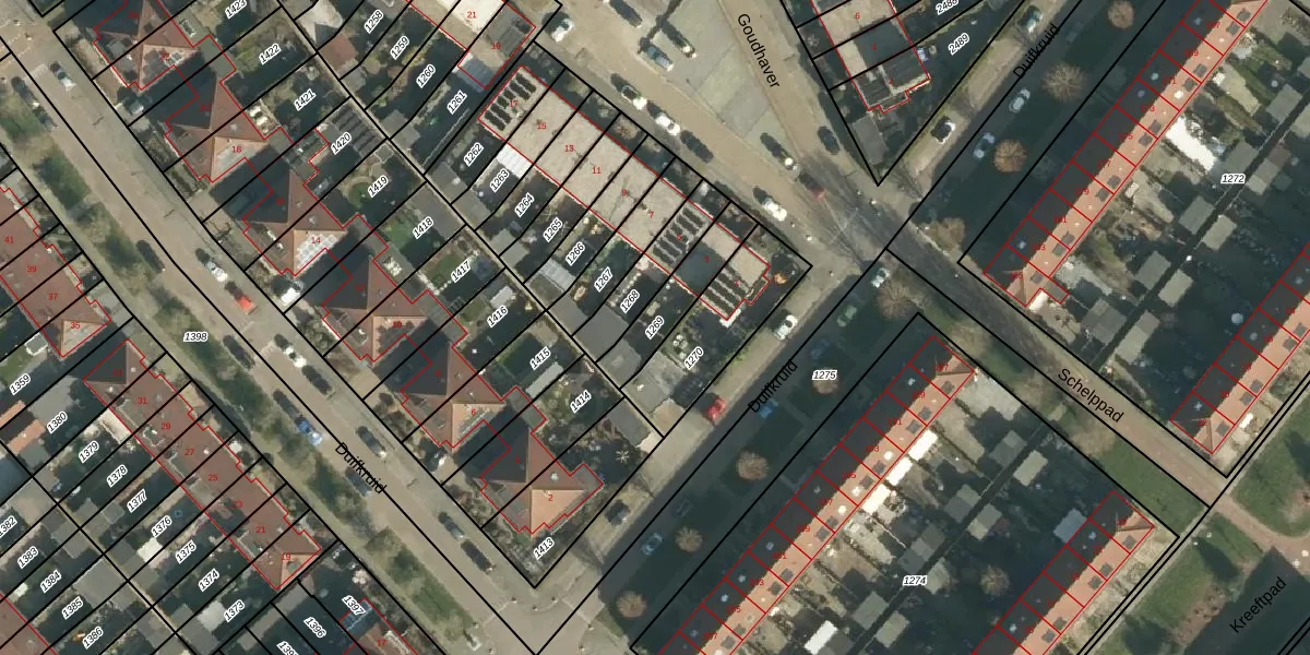 Gebruik de zoekbalk of klik op een perceel om informatie over het perceel te bekijken.