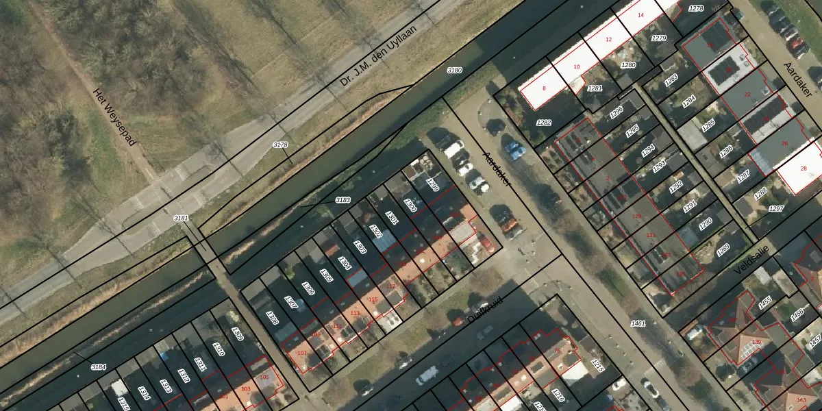 Gebruik de zoekbalk of klik op een perceel om informatie over het perceel te bekijken.