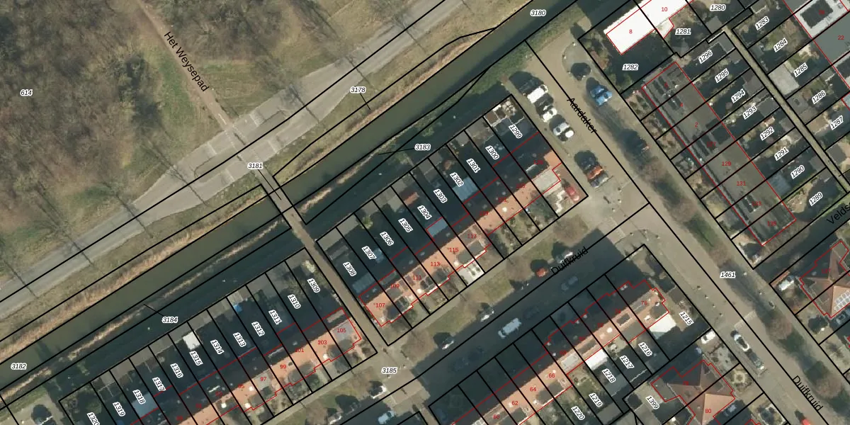 Gebruik de zoekbalk of klik op een perceel om informatie over het perceel te bekijken.