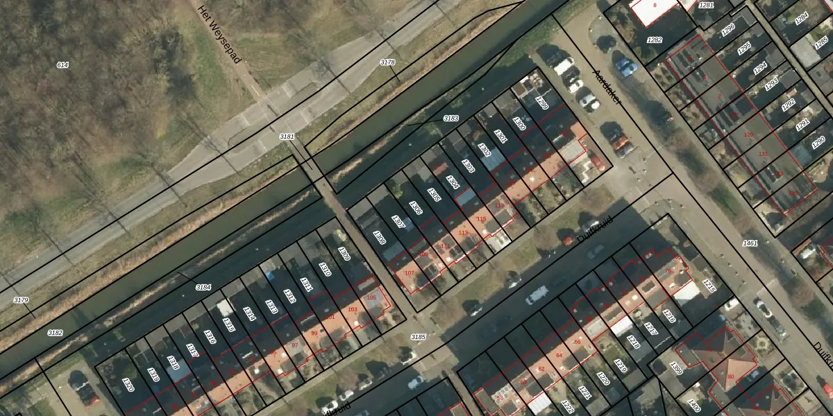 Gebruik de zoekbalk of klik op een perceel om informatie over het perceel te bekijken.