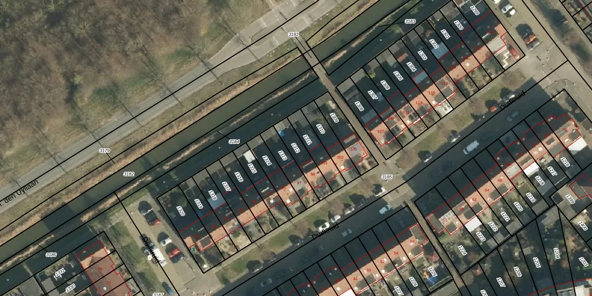 Gebruik de zoekbalk of klik op een perceel om informatie over het perceel te bekijken.