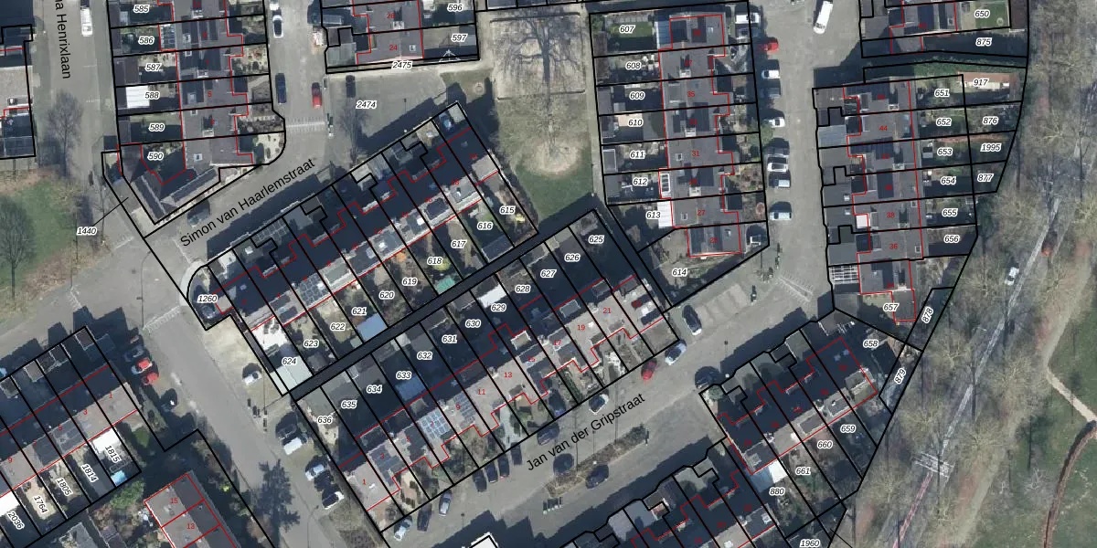 Gebruik de zoekbalk of klik op een perceel om informatie over het perceel te bekijken.