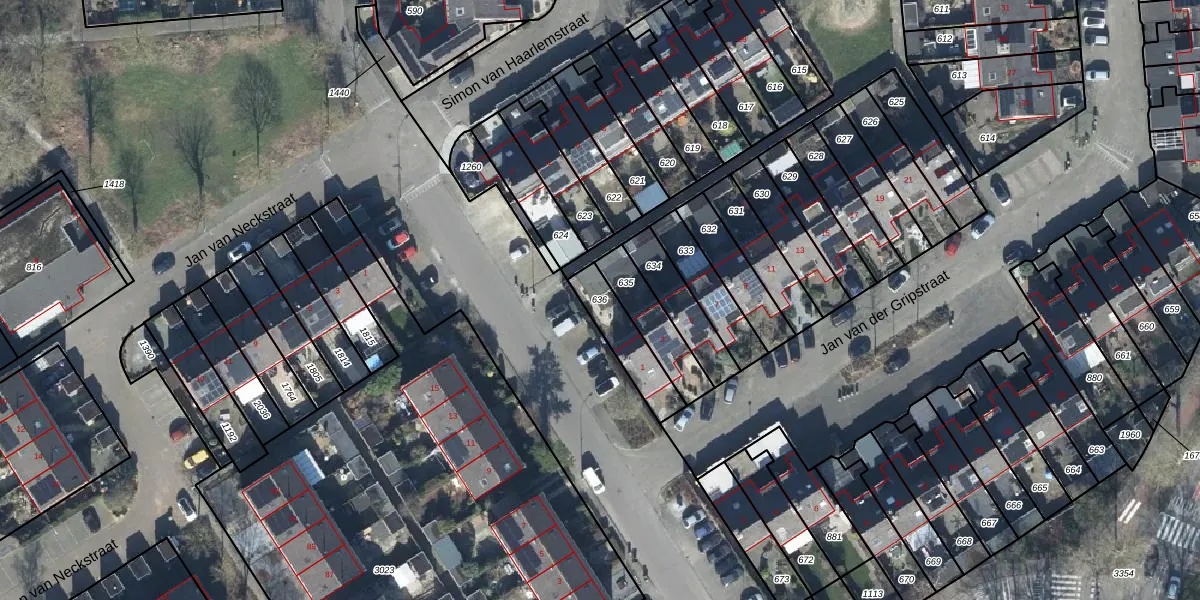 Gebruik de zoekbalk of klik op een perceel om informatie over het perceel te bekijken.