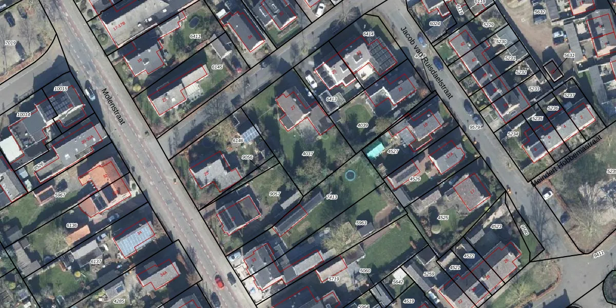 Gebruik de zoekbalk of klik op een perceel om informatie over het perceel te bekijken.