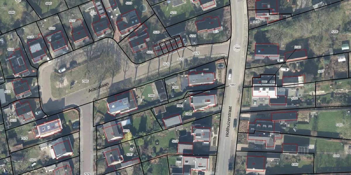 Gebruik de zoekbalk of klik op een perceel om informatie over het perceel te bekijken.