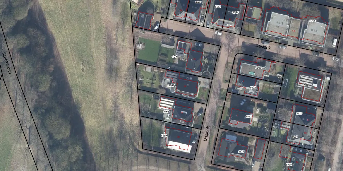 Gebruik de zoekbalk of klik op een perceel om informatie over het perceel te bekijken.