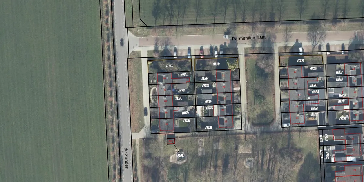 Gebruik de zoekbalk of klik op een perceel om informatie over het perceel te bekijken.