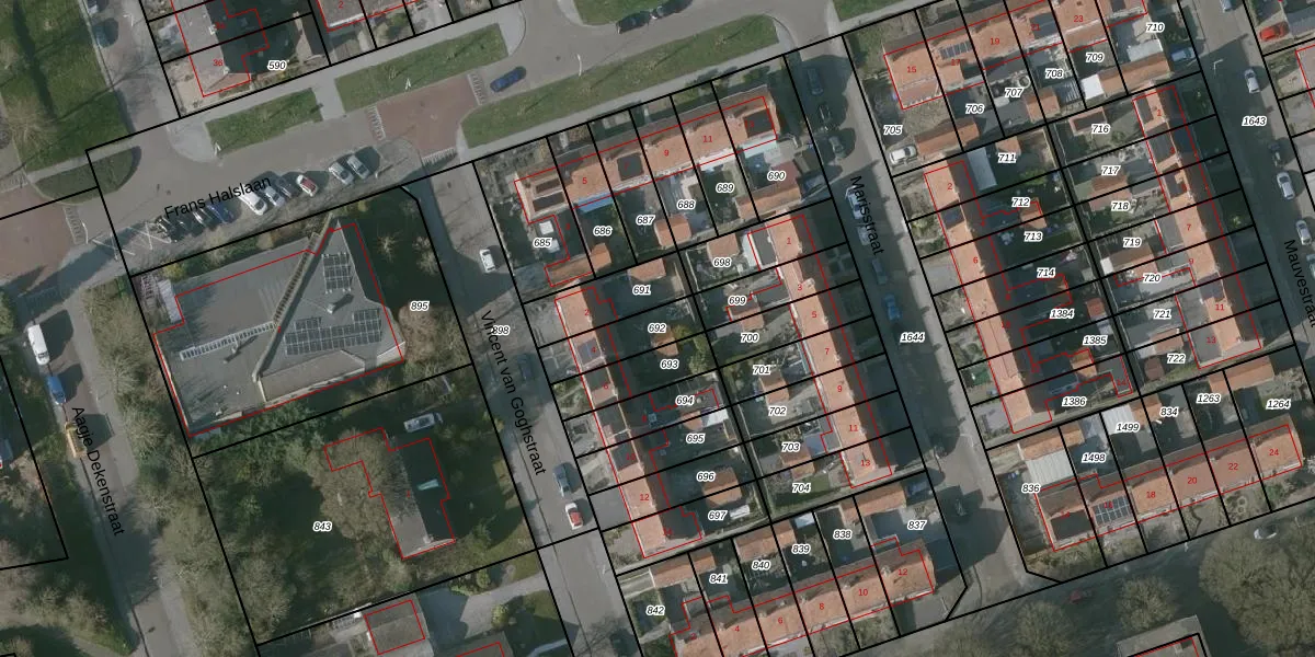 Gebruik de zoekbalk of klik op een perceel om informatie over het perceel te bekijken.