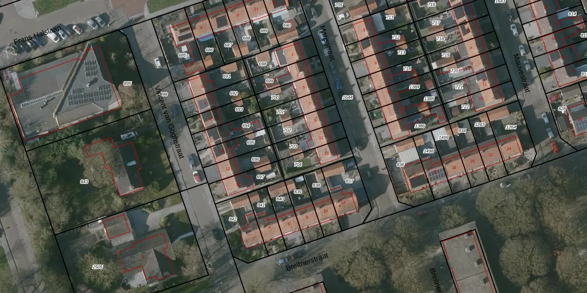 Gebruik de zoekbalk of klik op een perceel om informatie over het perceel te bekijken.