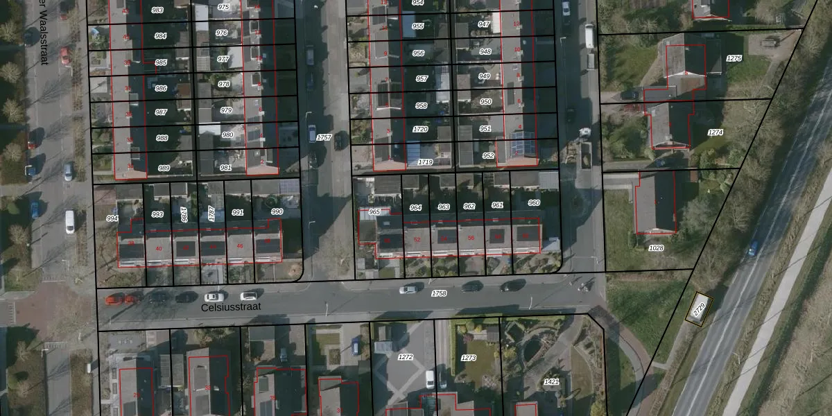 Gebruik de zoekbalk of klik op een perceel om informatie over het perceel te bekijken.