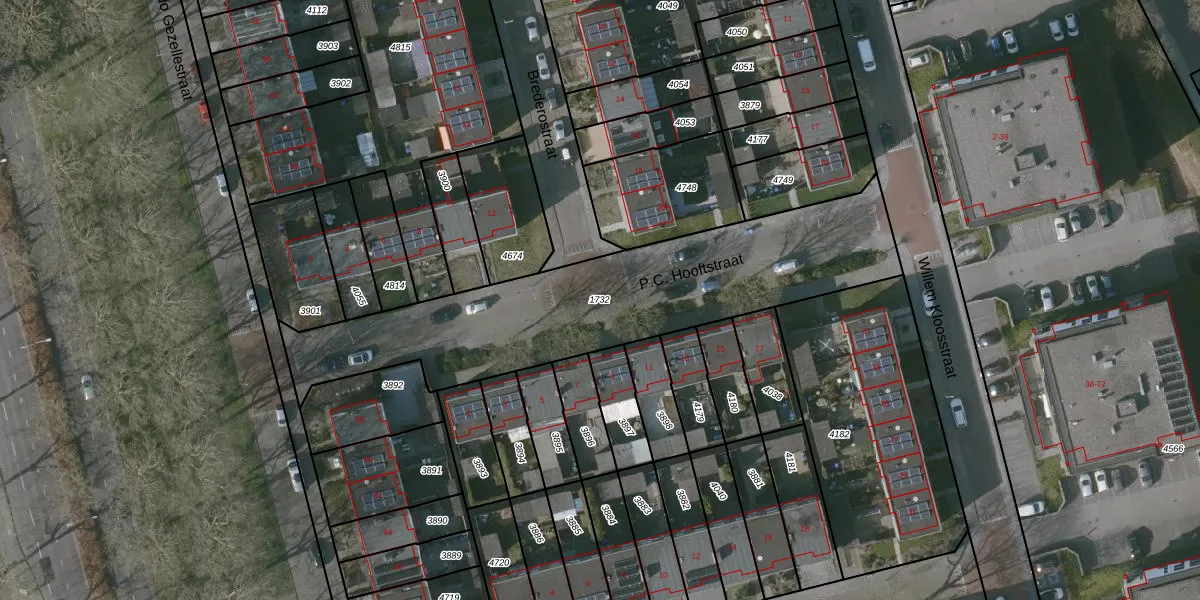 Gebruik de zoekbalk of klik op een perceel om informatie over het perceel te bekijken.