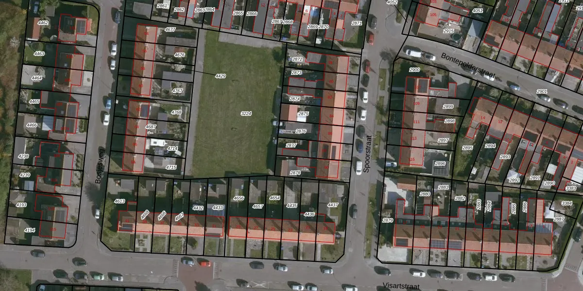 Gebruik de zoekbalk of klik op een perceel om informatie over het perceel te bekijken.