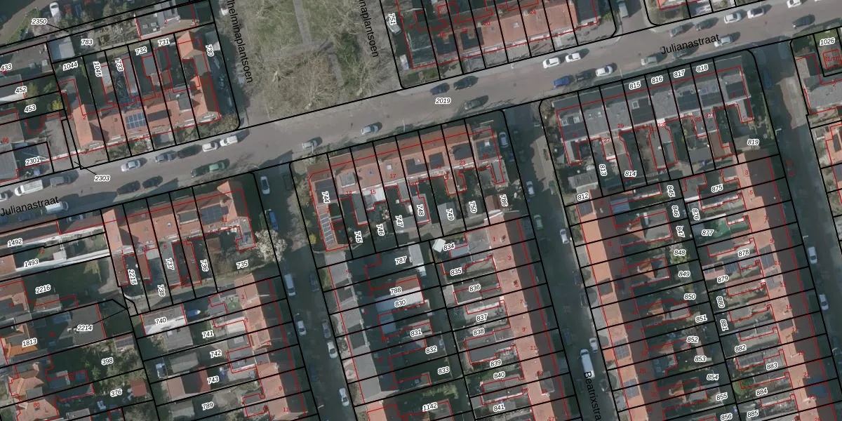 Gebruik de zoekbalk of klik op een perceel om informatie over het perceel te bekijken.