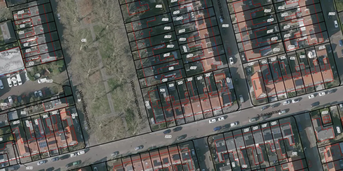 Gebruik de zoekbalk of klik op een perceel om informatie over het perceel te bekijken.