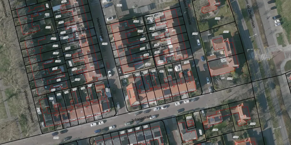 Gebruik de zoekbalk of klik op een perceel om informatie over het perceel te bekijken.