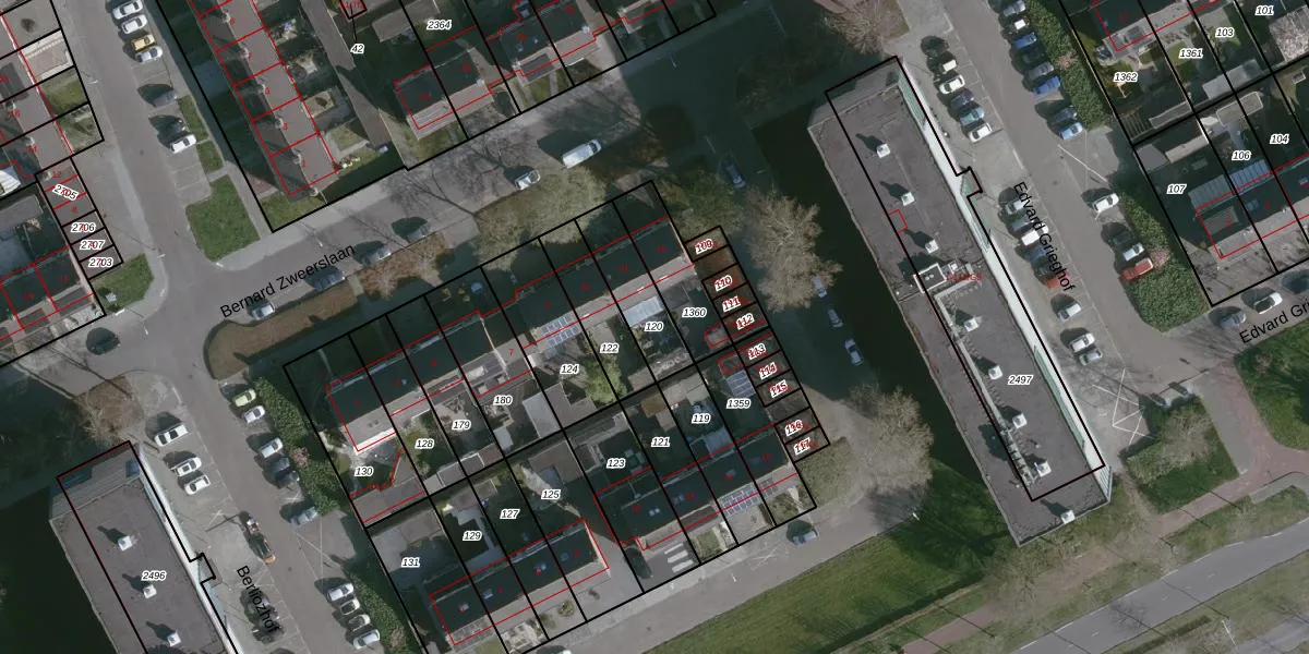 Gebruik de zoekbalk of klik op een perceel om informatie over het perceel te bekijken.