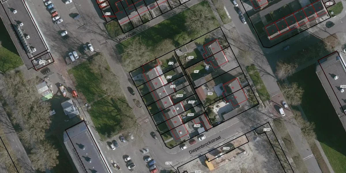 Gebruik de zoekbalk of klik op een perceel om informatie over het perceel te bekijken.