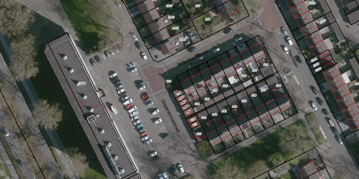 Gebruik de zoekbalk of klik op een perceel om informatie over het perceel te bekijken.
