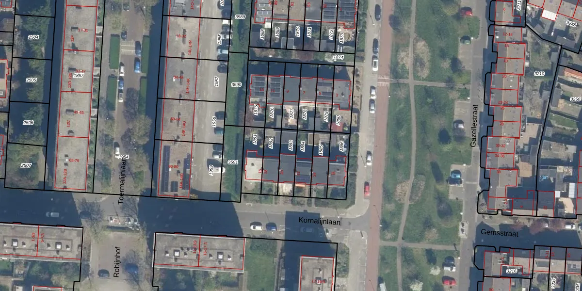 Gebruik de zoekbalk of klik op een perceel om informatie over het perceel te bekijken.