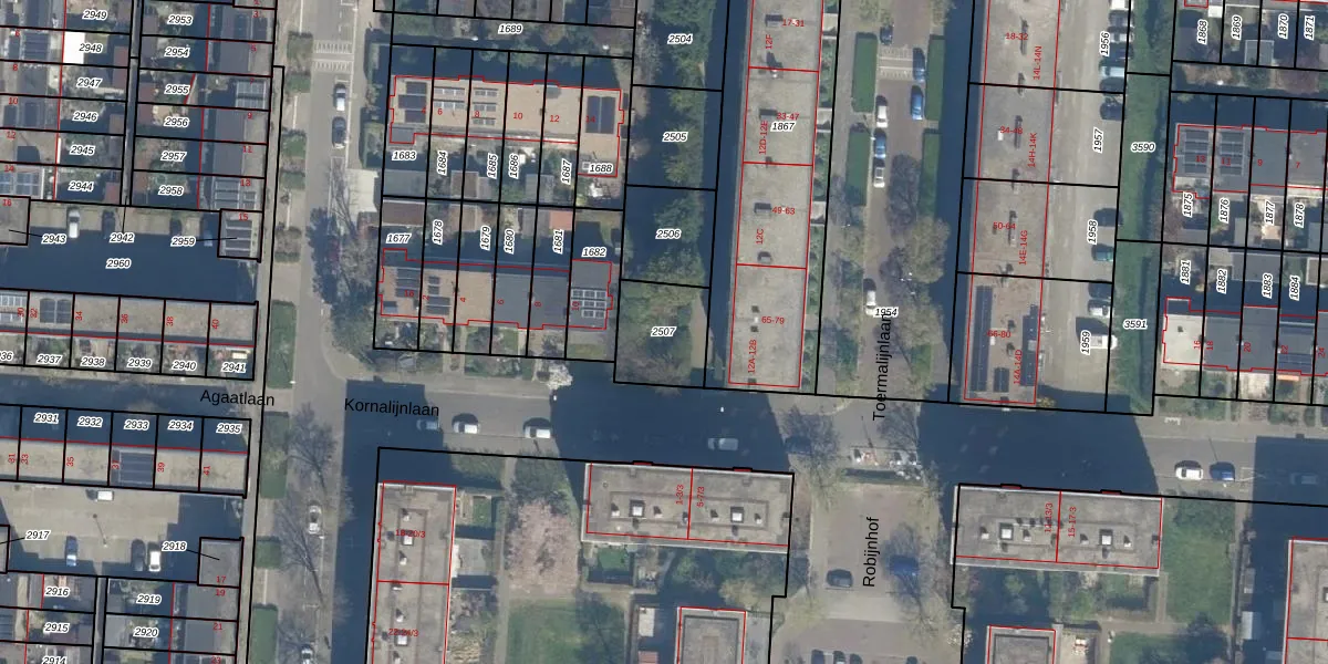 Gebruik de zoekbalk of klik op een perceel om informatie over het perceel te bekijken.